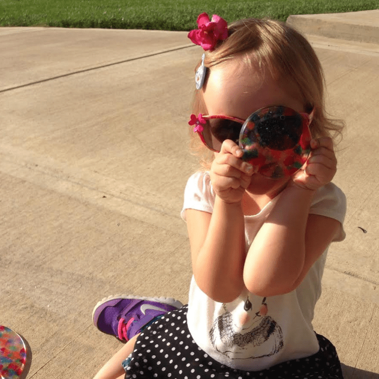 Since this process only takes about 5 minutes to complete, find another outdoor activity to occupy your little love while they bake. Chalk drawings were Mya’s activity of choice.